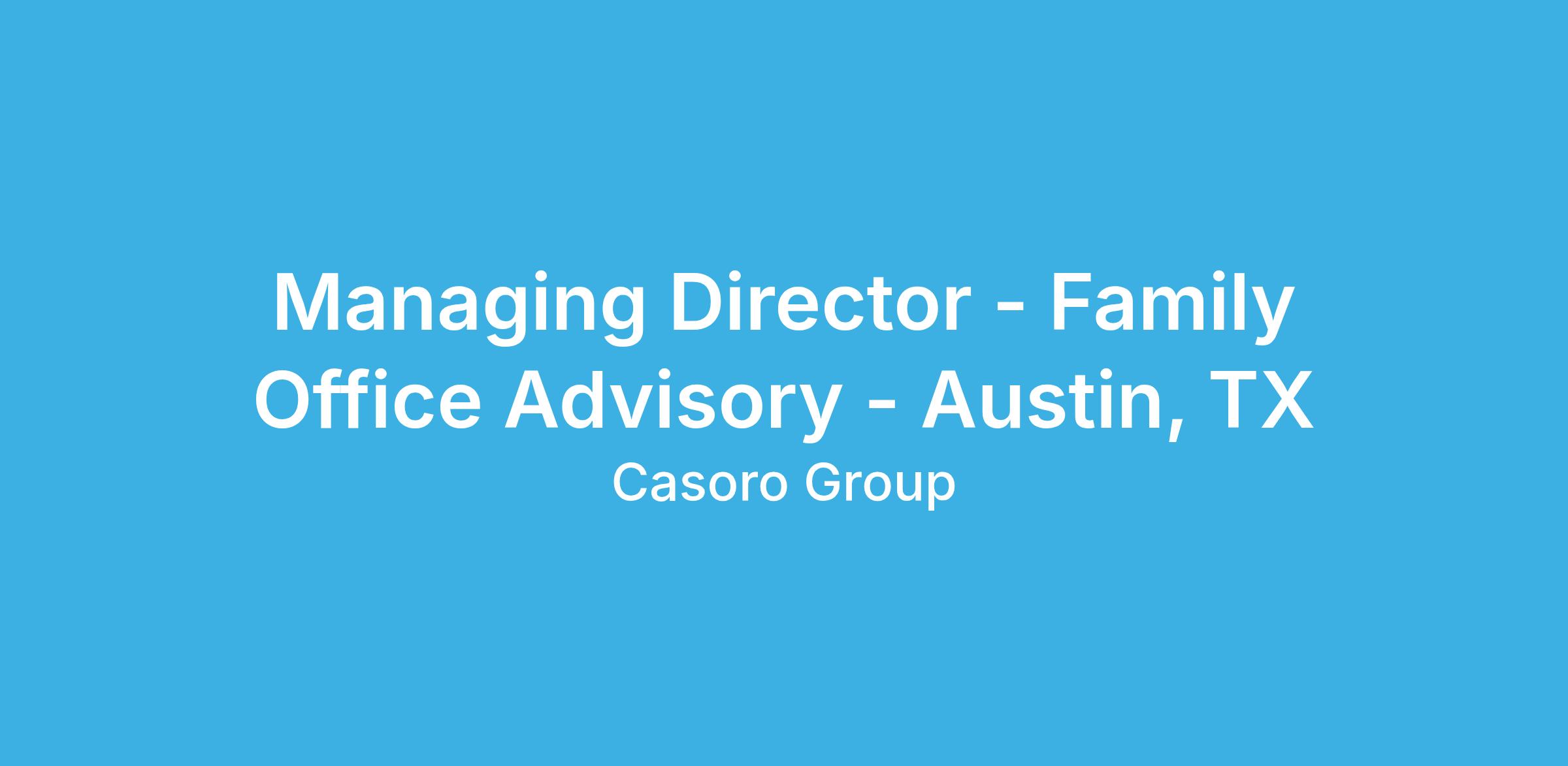 This is a role for the seasoned advisor who thrives at the intersection of strategy, complexity, and human capital. We’re looking for someone with the depth to manage dynamic portfolios and the emotional intelligence to navigate family dynamics. It’s demanding and deeply rewarding.