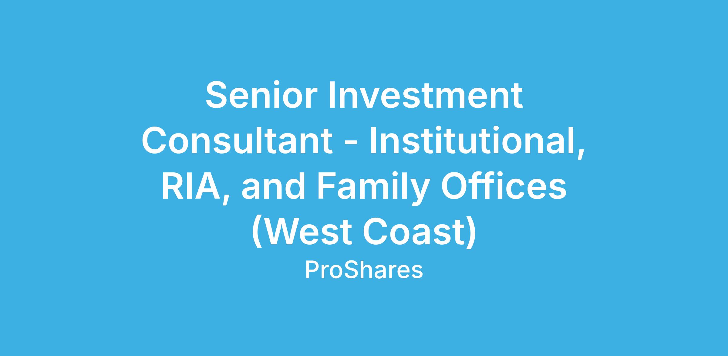 The Senior Investment Consultant will be responsible for the distribution of all ProShares strategic product offerings through institutional relationships which include Registered Investment Advisors ('RIA"), Bank Trust and Single and Multi-Family Offices.
