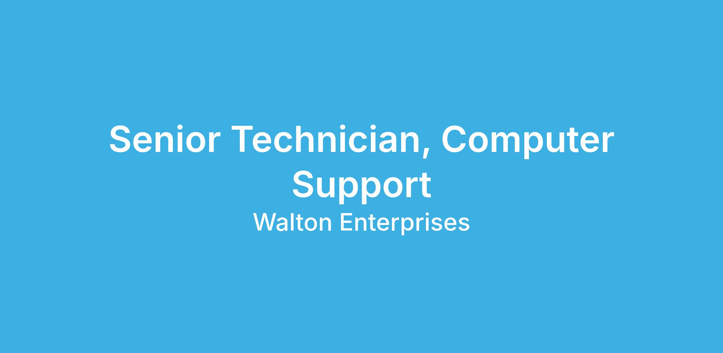 Walton Enterprises is seeking a skilled, highly motivated and entrepreneurial individual to join the team as a Senior Computer Support Technician. The ideal teammate will have the demonstrated ability to support a diverse organization with end user and high touch customer support.