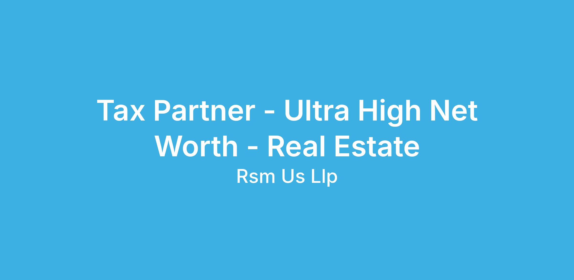 This partner would align to our UHNW practice but work very closely with the real estate team to augment the breath of tax compliance and consulting services for our real estate focused UHNW clients and family offices. You would immediately be integrating into the UHNW national leadership team to develop and learn from high functioning partners in other markets and would immediately be tasked with partnering on some very strategic clients. Candidates must be familiar with high net worth tax consulting and possess the analytical skills necessary for the effective diagnosis, development and implementation of solutions to clients' tax needs. With the support of the firm, you'll have the opportunity to develop and pursue creative approaches to resolve client issues.