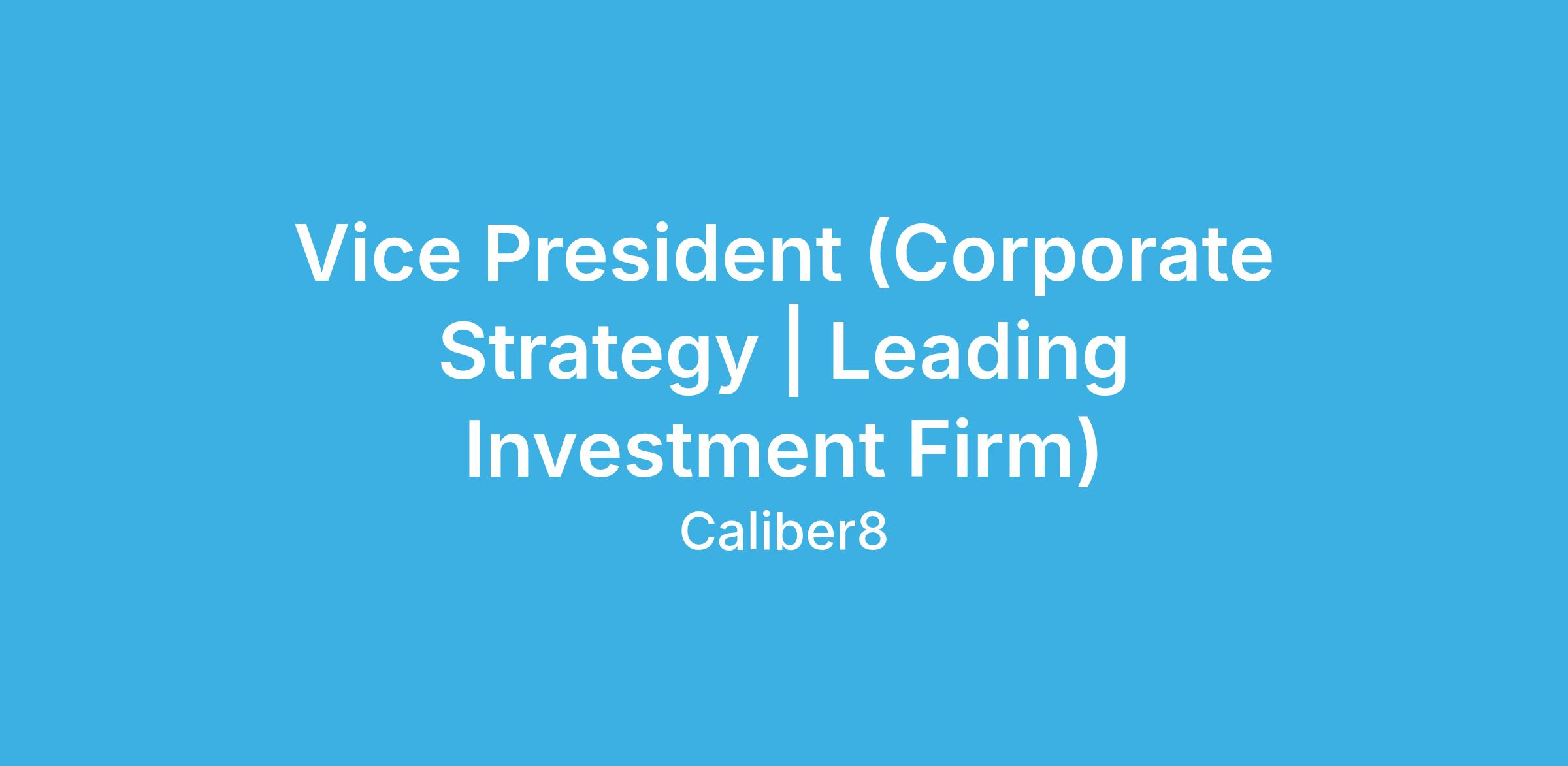Vice President (Corporate Strategy | Leading Investment Firm)